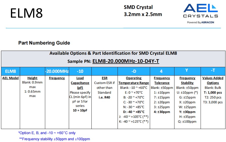 更多>>ELM8-24.000MHz-9-R40-N1U-T,AEL進口晶振,3225mm諧振器