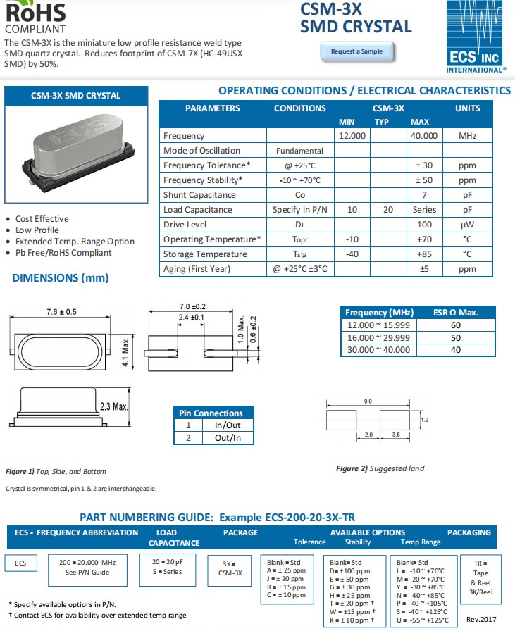 ECS-160-20-3X-TR,CSM-3X,ECS車載控制器晶振,16MHz晶振,規(guī)格表