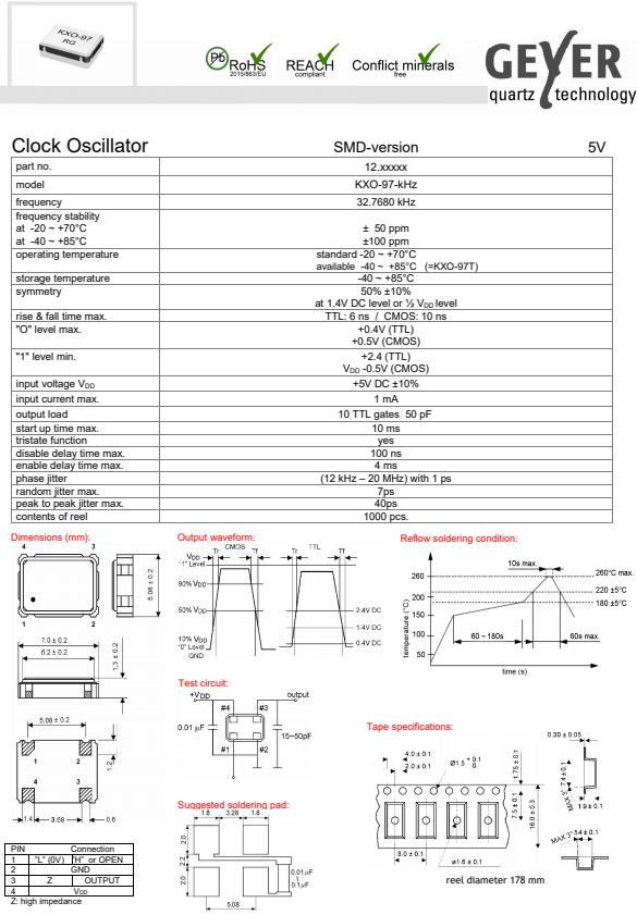 更多>>格耶德國晶振,KXO-97-kHz進(jìn)口晶振,石英晶體振蕩器
