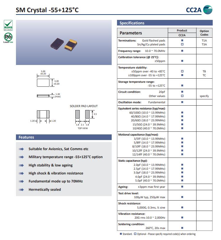 | 頻率溫度特征 | f_tem | ±50ppm over -40 to +85°C ±100ppm over -55 to +125°C | 超出標準的規(guī)格請聯(lián)系我們. | |