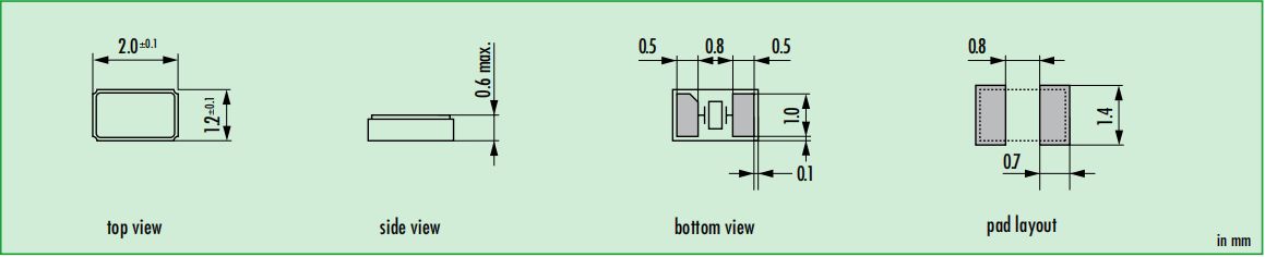 Q 0.032768-JTX210-9-20-T3-LF,32.768KHz,20PPM,9PF,-40~125℃,2012,歐美進(jìn)口晶振,32.768 kHz n回流焊溫度:最大260°C。n個包裝高度,最大0.6 mm。SMD調(diào)諧叉子晶體·2.0 x 1.2毫米