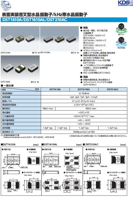 更多>>KDS無源晶振DST1610AL,1TJL070DR1A0009音叉晶體