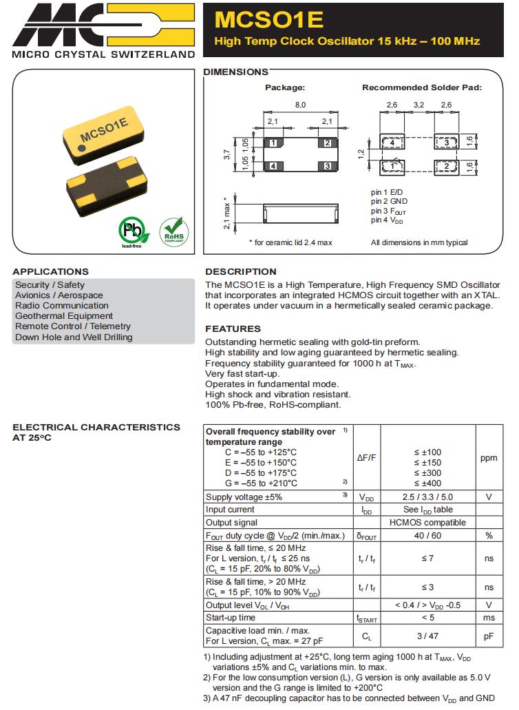 MCSO1ECHV-C-40.000MHz-E/D-T3|耐高溫晶振|6G基站晶振規(guī)格表
