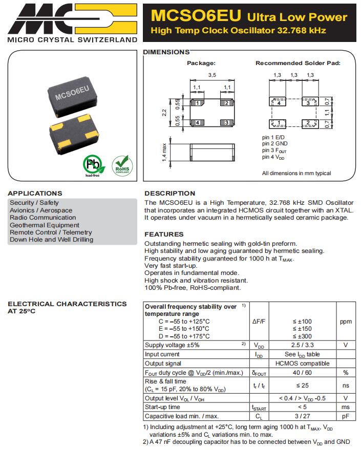 | OM-7604-C7-32.768kHz-20PPM-TB-QC | Micro Crystal | 標(biāo)準(zhǔn)時鐘振蕩器 32.768 kHz +/-20 PPM -40/+125C |